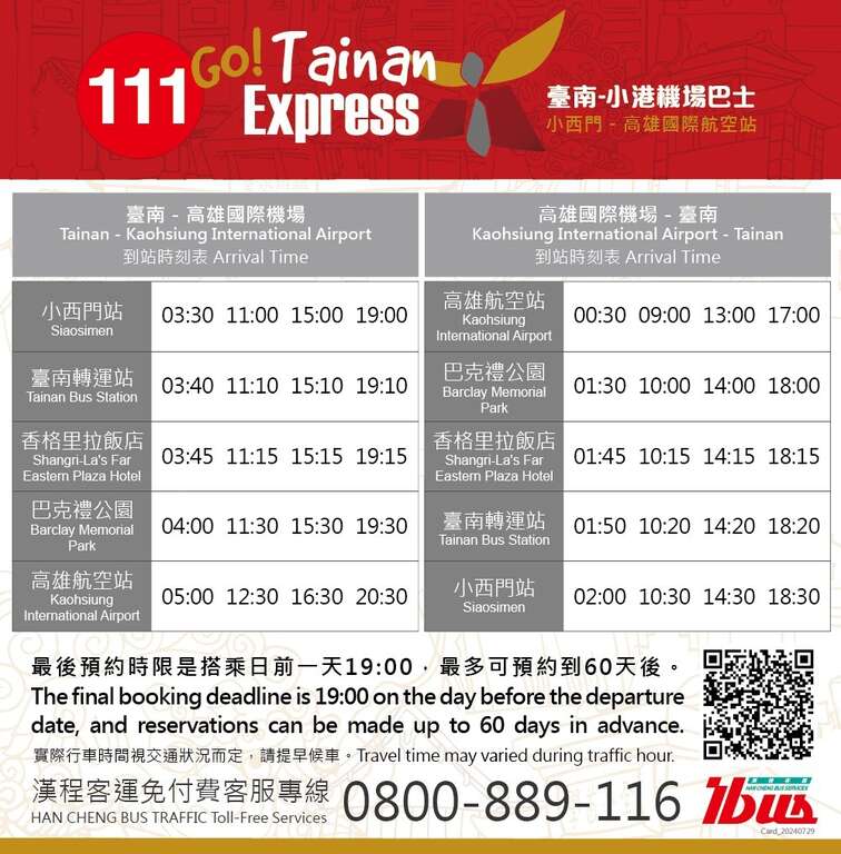 移動時間も約70分と電車での移動よりも早く到着します。乗車場所は台南市内に4ヶ所ありとても便利。ですが、本数はいまのところ1日に4本しかないので、フライトの時間帯によっては時間が合わず利用するのが難しそうですが、もしフライトがちょうどいい時間帯であれば積極的に利用したいですね。