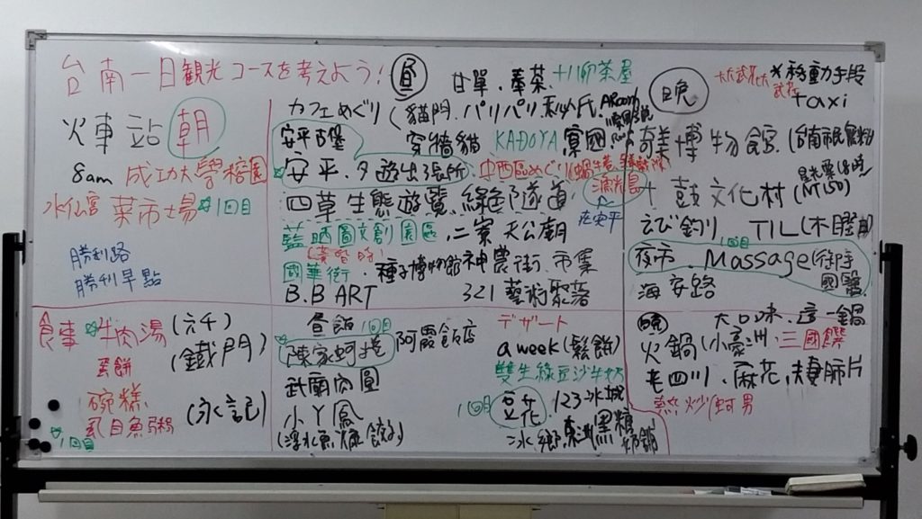 1/18の交流会のテーマは「台南一日観光コースを考えよう!」でした。 古都や美食の街として知られる台南。もし友人が台南に遊びに来たらどこを紹介しよう?というわけで皆さんおすすめのスポットやお店を挙げてもらい、その後コースを考えてみました。台南... -